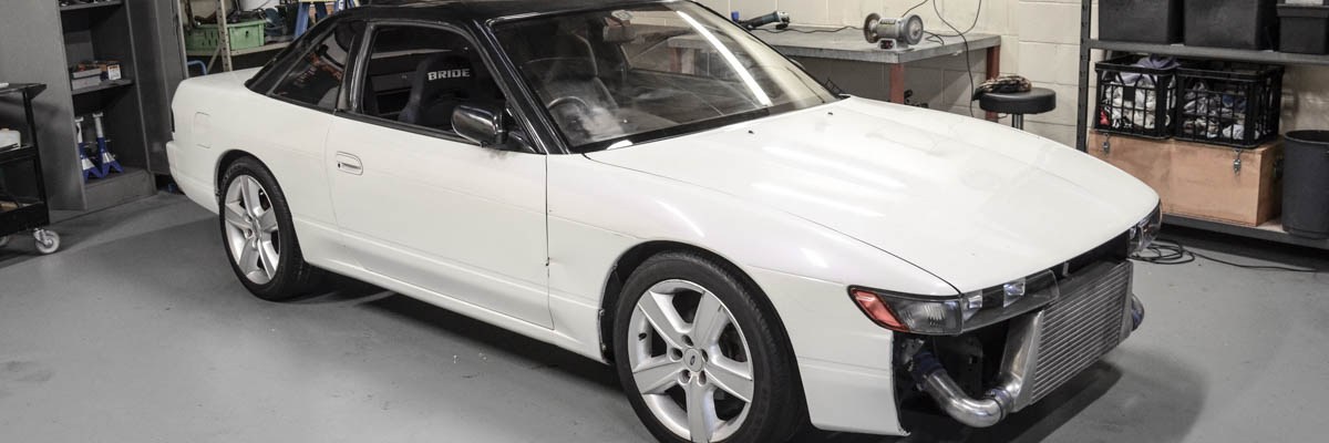Last week I picked up this Nissan Silvia S13 for a new project. I’ve been searching for the right S-chassis for a while now and I’m glad I’ve finally found one that I’m happy with. I wanted a tidy non-sunroof shell with clean plates. It also had to have an SR20DET drivetrain, or at least be cheap enough to convert. I’m glad I decided to take the route of paying a bit more for a mostly compete package instead of trying to piece one together. There is to much risk of the project dragging out longer than is enjoyable going that way. This one still needs a lot of work, but the plan is that after the initial stages it can largely stay in one piece to avoid turning into scrap pile.